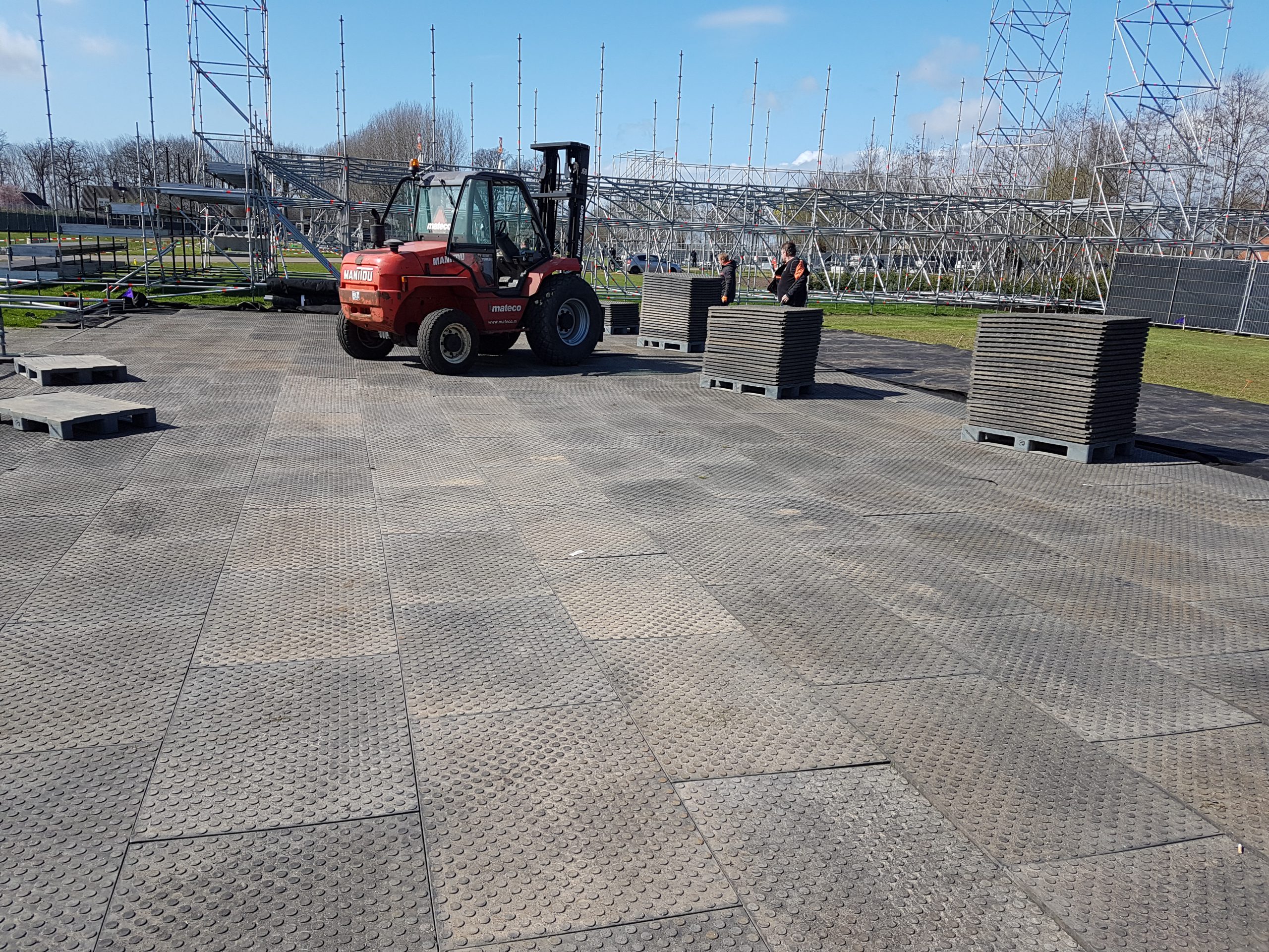 123Floorrent helpt u hier graag bij. Wij sturen graag iemand mee om uw vrijwilligers aan te sturen en de heftruck werkzaamheden te verrichten die nodig zijn om de vloer te leggen.